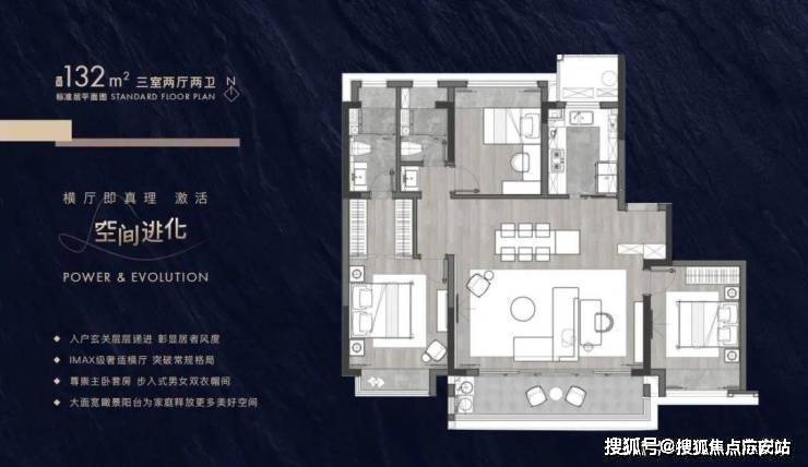 建筑面积约102-143㎡进阶户型带来全生命周期的舒居空间,全横厅设计诠释大尺度场景,阔境阳台、主卧套房设计,配备有独立卫生间和衣帽间,满足面面俱到的理想人居。