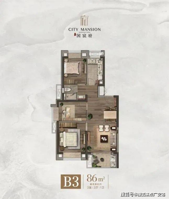 2.重要的是功能性还很到位,86平就做到3房,对小夫妻或者小太阳家庭,保证未来5-10年居住不落伍。