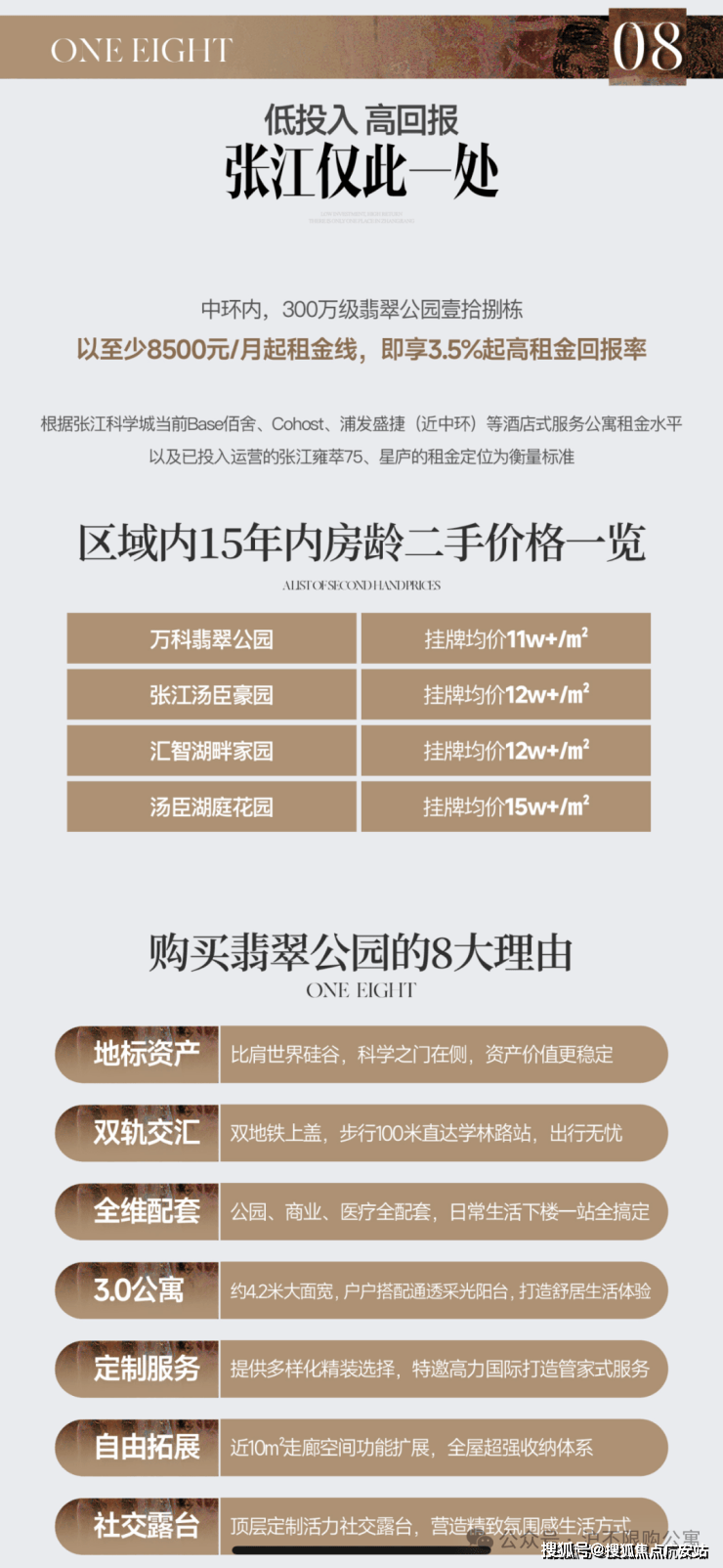 高投资回报:租金稳定,51㎡户型月租金约8500元,年化收益率达4%,高于张江住宅平均水平;张江板块近五年房价年均涨幅8.7%,资产保值增值潜力强