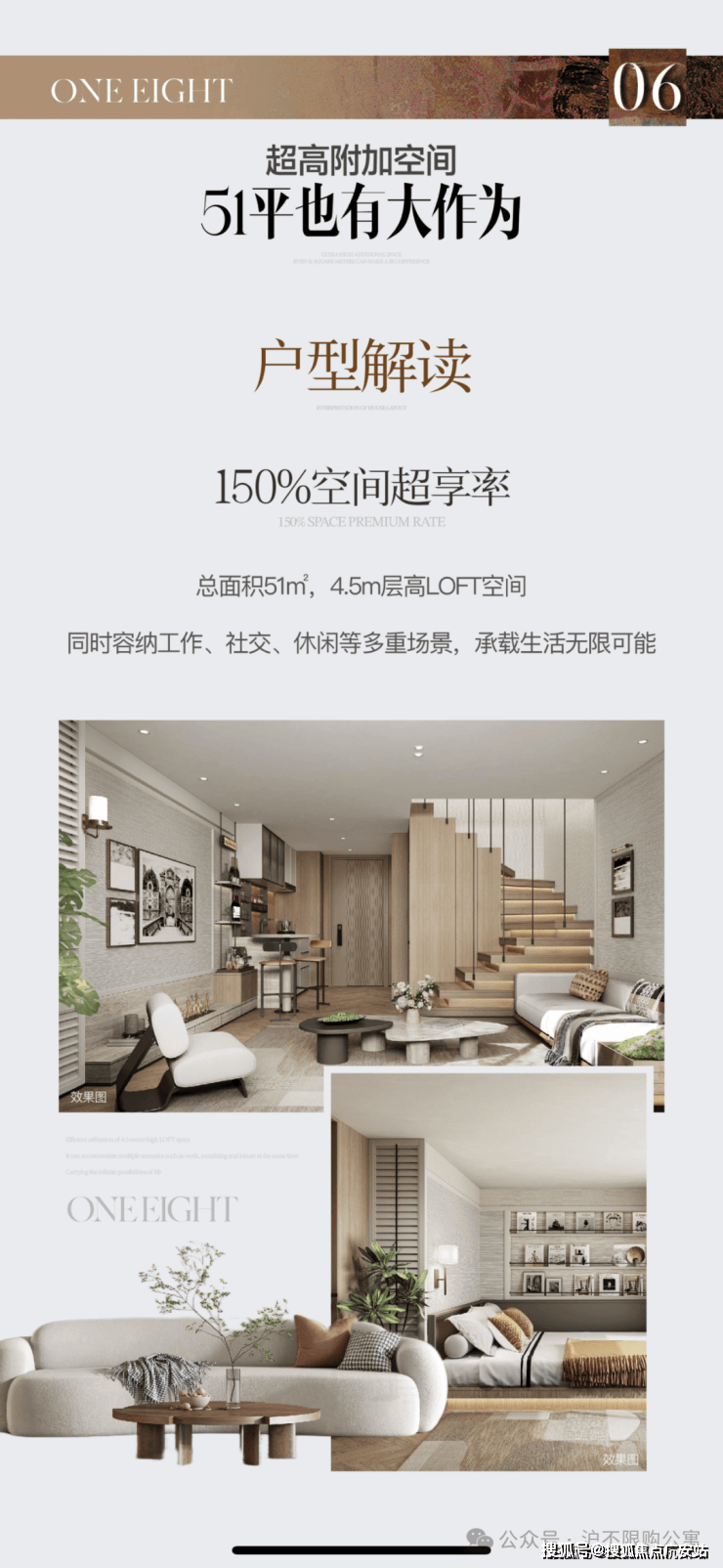 产品创新设计:4.5米挑高空间,双钥匙设计,双向采光通风,动静分区明确,既适合单身白领自住,也可用于以租养贷投资模式