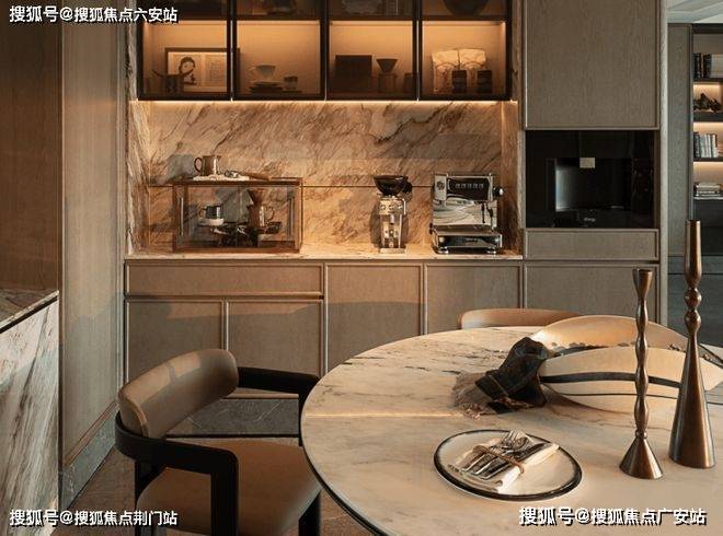 融合东西方美学,暖木色的饰面撞上天然石纹,搭配云石吊灯等质感单品,既藏着东方的含蓄,又透着西方的简约。