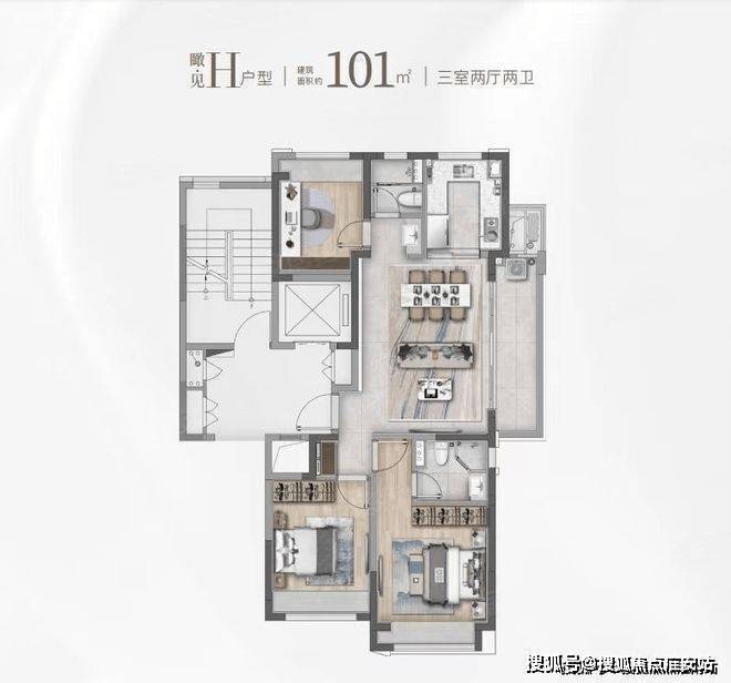 建面约101㎡的F和G户型都是市面上备受认可的飞机经典款户型。