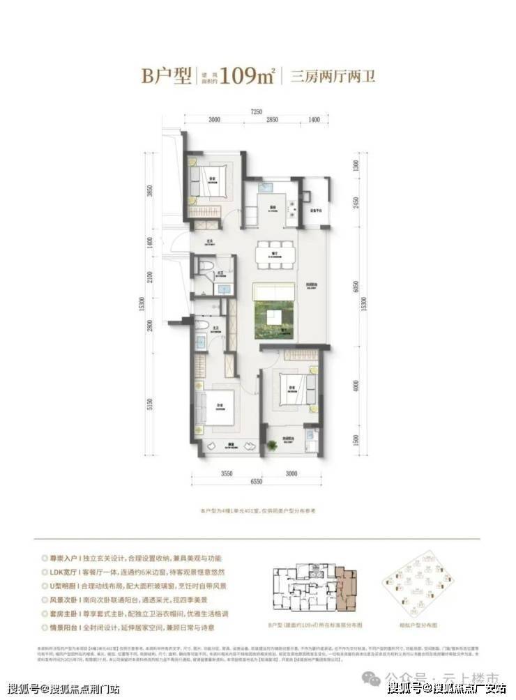 106方的起步户型,居然做了4开间朝南,南向3个房间,整个南向采光面达到了约12.5米。