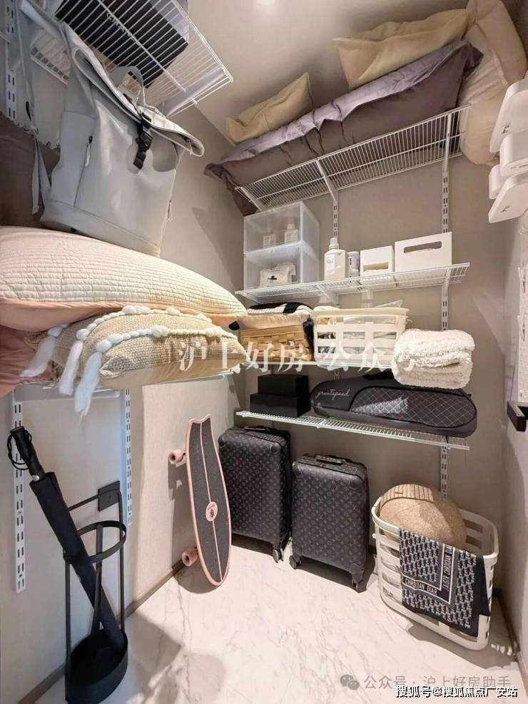 客厅左手边做了一个敞开式书房和一个南向客卧,其中南向客卧里带一个独立衣帽间。