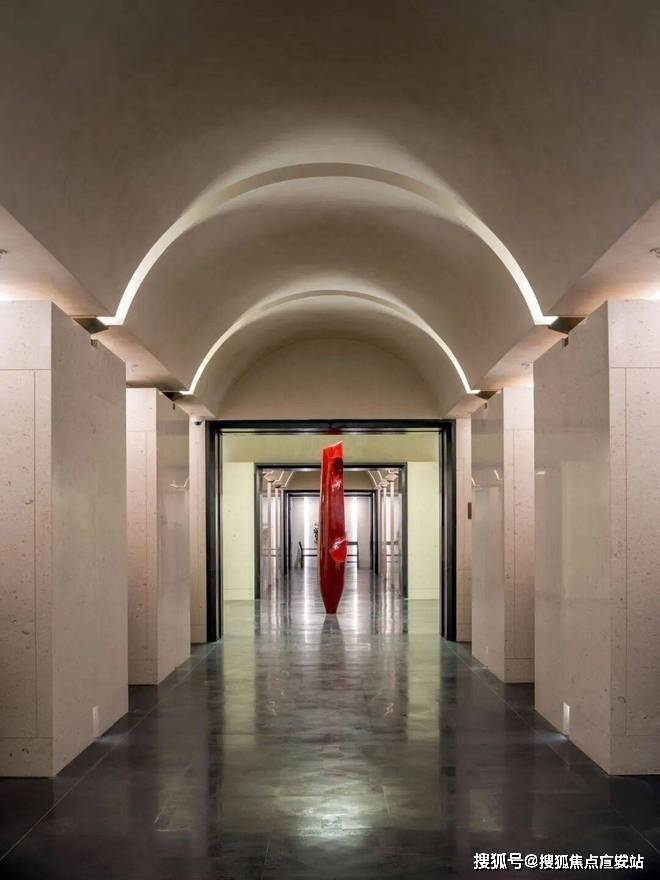 比如,艺术感与质感并存的车库,以及全石材地面铺装的车库大堂。
