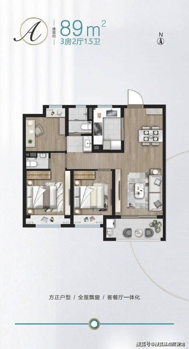洼地属性不再赘述,我们重点来看造就劲爆价格的明星户型——建面约89㎡3房!