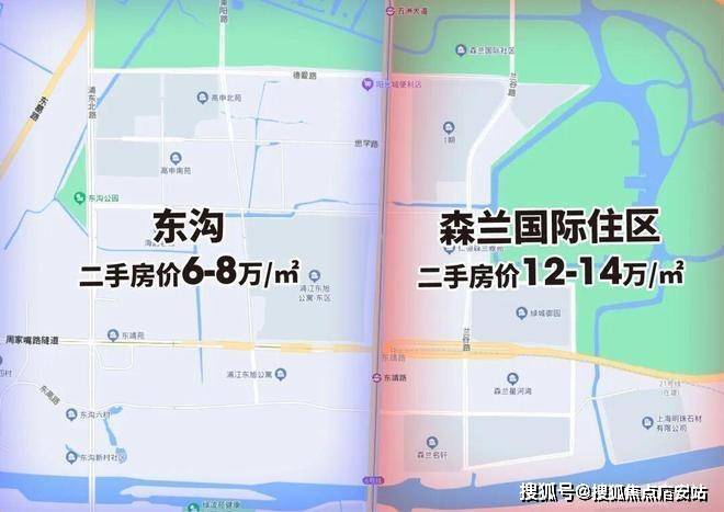 比如高行,西面是动迁房和老小区云集的东沟,二手价格只有6-8万;东面则是配套丰富的森兰国际住区,二手价格高达12-14万.