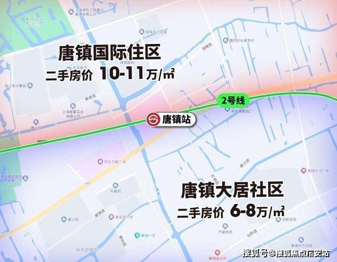 唐镇也是如此,2号线北面涵盖了板块大多数配套,高品质次新房云集,圈层能级比南面明显高数个档次,二手房价差距已经拉开到3-4万/㎡.