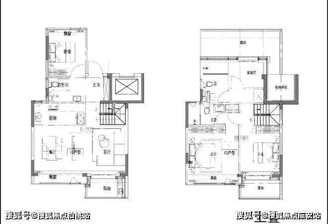 高层除140㎡户型为两梯两户以外,其余全部为两梯四户,中间套带连廊!