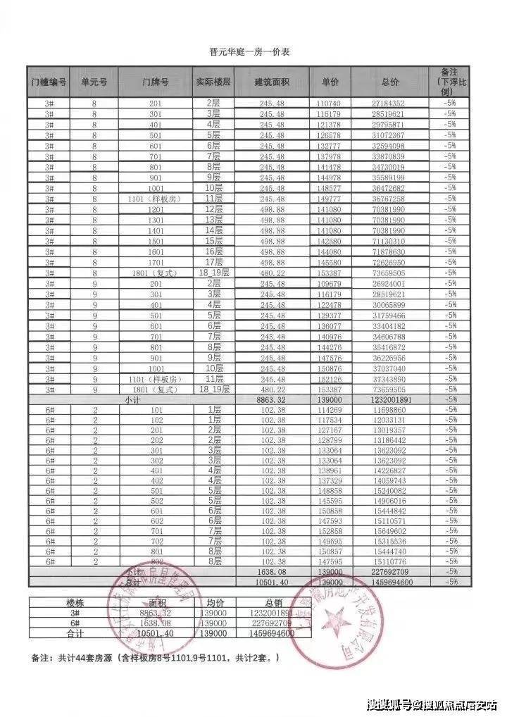 一房一价表: