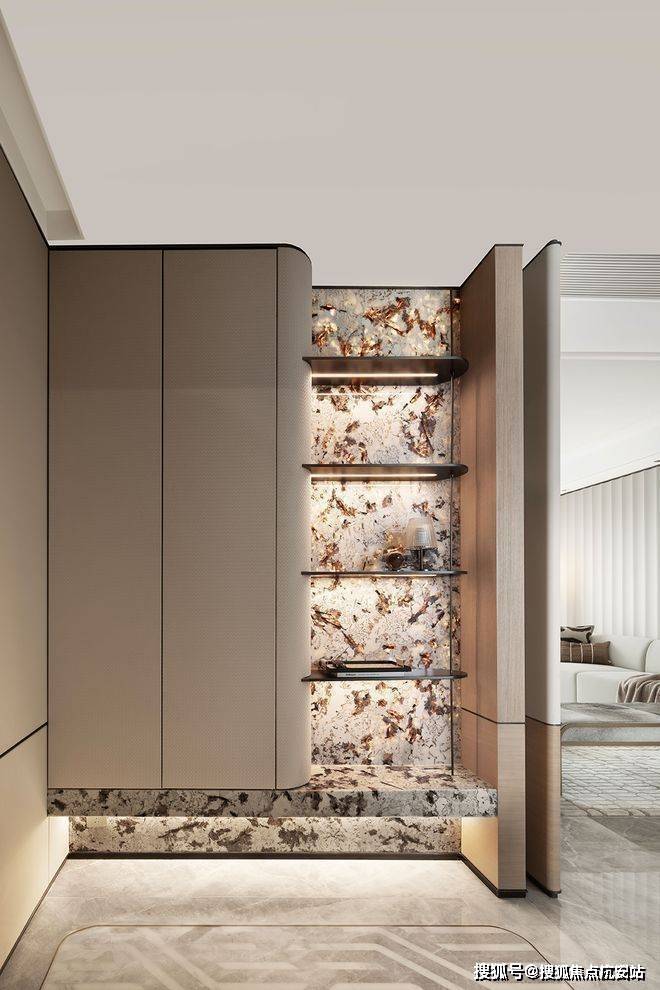 波光水影,往来豁然。玄关在方圆之间,提点生活的包容之态。