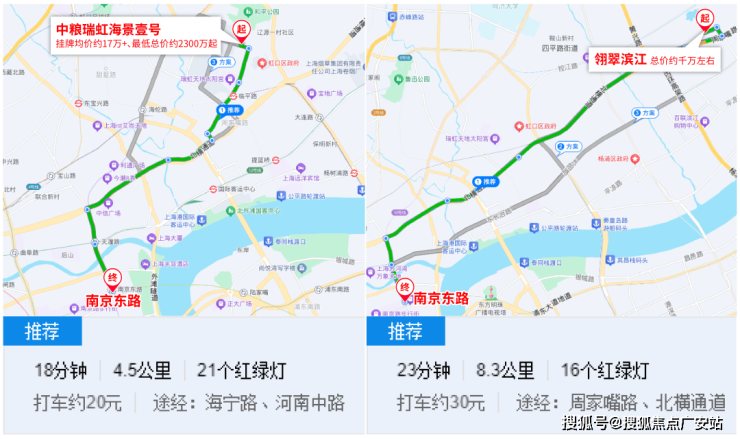 但论去市区的出行时间,中粮瑞虹海景壹号与翎翠滨江,真的就是伯仲之间。
