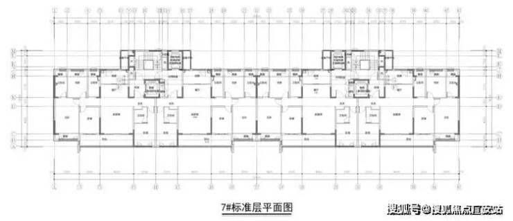 1#标准层平面图如下:7F洋房,4梯4户,同步曝光1个户型。