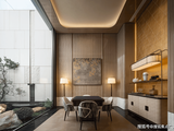 私密场域依旧保持静谧,黑白色基础上搭配了更多的色彩,例如深棕、浅紫等,艺术品的衬托深邃迷人,热络了家的氛围。