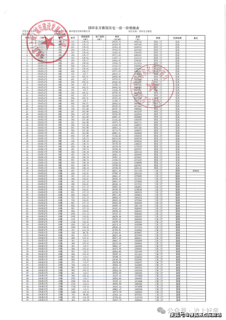 项目一房一价表