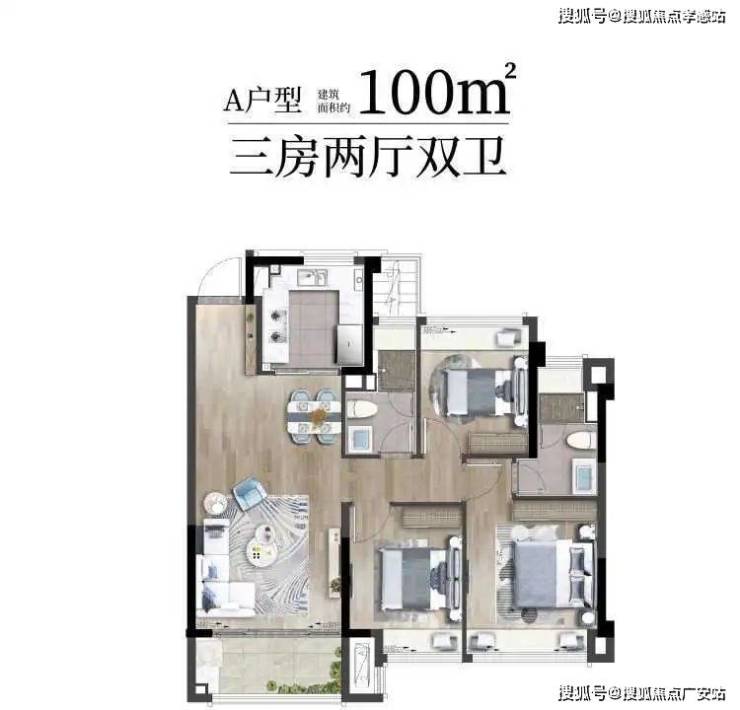 约100㎡|3房2厅2卫(得房率约79%)