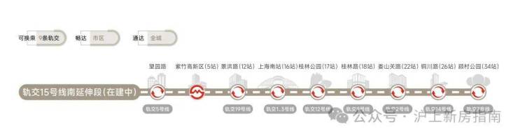 轨交网络:5号线、15号线南延伸段(在建中)、市域嘉闵线南延伸段(规划中)、沪乍杭高铁(规划中)及南枫线(在建中)