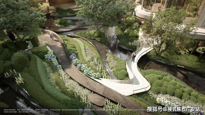 全域抬板设计更催生了“三重立体垂直园林体系”,通过屋顶花园、抬板宅间花园、下沉庭院的层层递进,让建筑生长在园林之中,推窗即见层次丰富的“城市山林”,彻底打破了传统平面园林的单调感。
