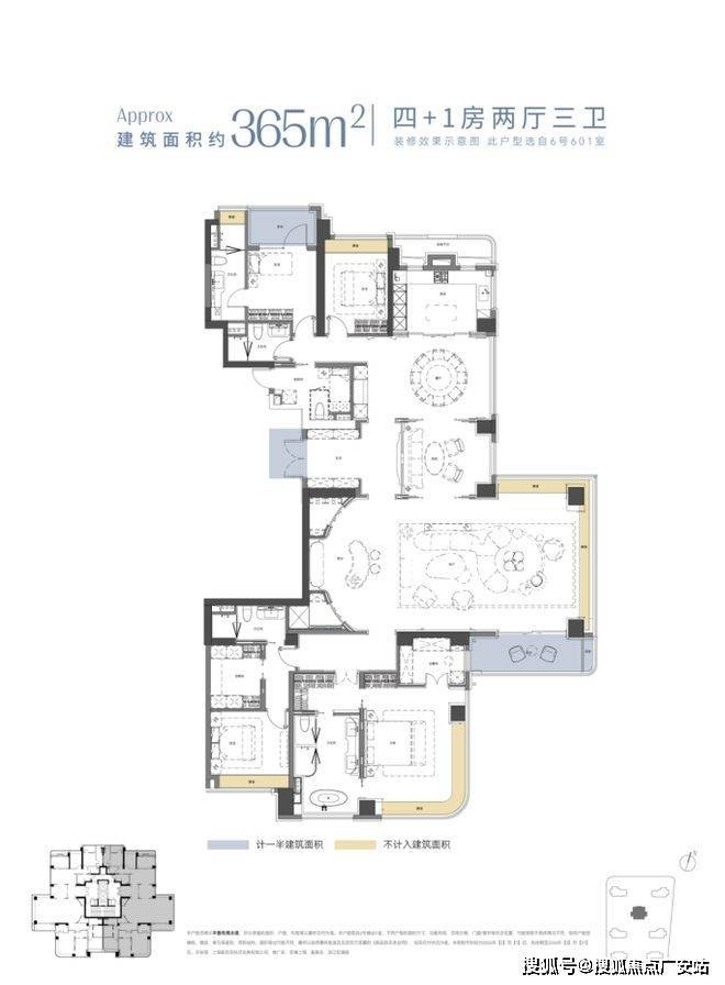 建面约365㎡4+1全景舱户型,更是将光与空间的融合做到了极致。全屋约60 米超长采光周长,以环幕级采光界面,让阳光成为空间的原生底色;约80㎡全景舱大方厅,无界贯通的空间格局,实现了家庭欢聚、圈层社交的全场景适配。三套独立全功能房设计,保障居住的私密性与尊崇感,完美适配多代同堂的家族居住需求,成为可世代传承的塔尖恒产。