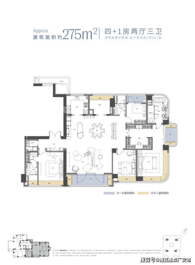 建面约275㎡4+1 房户型,以约22 米南向极致面宽,实现了超越市面 400㎡级大平层的采光尺度,约 80㎡奢阔餐客通厅搭配 7.2 米客厅开间,形成无界通透的社交聚场,既容得下三餐四季的烟火日常,也撑得起家族宴请的排场体面。