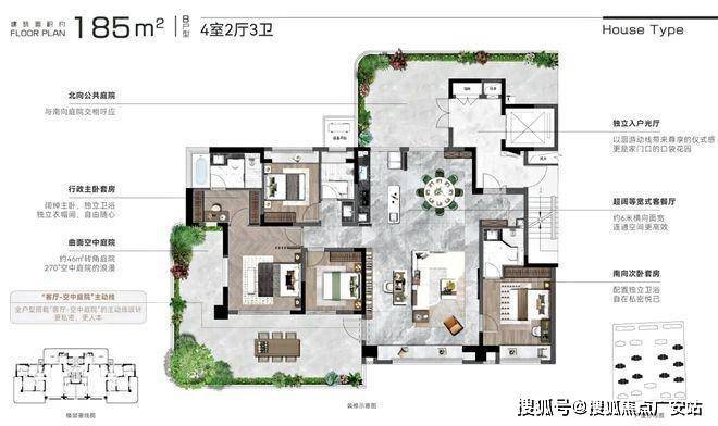 建面185㎡的奇数层户型,巧妙解锁多元生活空间:南向空中庭院与客厅无缝衔接,营造出“超级庭院”,突破传统空间限制,将自然美景融入居家生活,打造极致舒适的生活娱乐场景,开启无限可能的居住体验。