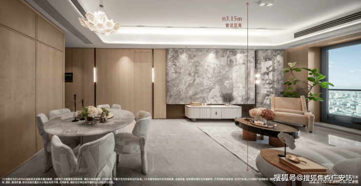 值得一提的是,室内约3.15米的层高,较主流3-3.1米层高多出5-15厘米。这一细微提升意义重大:即使在安装中央空调、地暖系统后,室内空间依然开阔疏朗,毫无压抑感,这是居住体验的一次颠覆性升级。