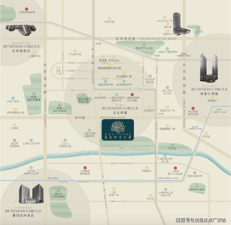 【医疗】:在医疗服务方面,项目周边分布着众多综合医院——上海市第六人民医院,上海伽玛医院、上海中医药大学附属光华医院,距离项目约4.5公里左右还有高端私人医院上海和睦家,为社区的居民的健康提供保障。