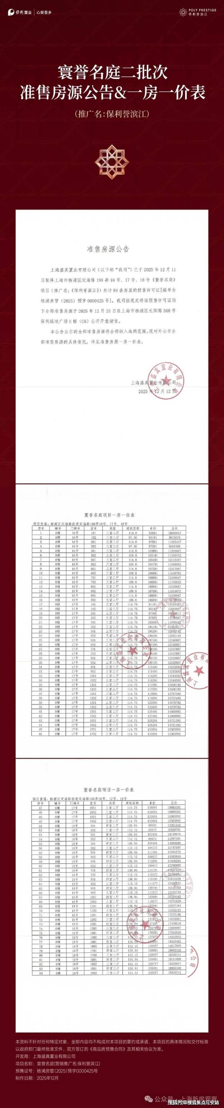 最新消息!杨浦滨江标杆!全铝板+会所!【保利誉滨江】二批次推出的8号楼“瞰江楼王”备受瞩目,共84套房源!主力建面约97-139㎡3-4房;均价11.55万/㎡!认购金100万!认购时间:12月13日-12月17日;开启一次对上海核心区滨江资产的“限量清仓”。售楼处线上火热预约中!
