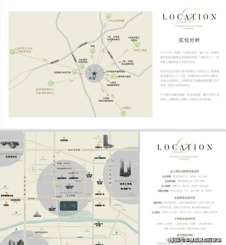一、区位和交通:1.1、我们地处闵行长宁交界的古北板块,项目依托虹桥交通枢纽和长宁徐汇商圈,交通便利配套成熟,是上海第一个大型高标准的国际豪宅社区。