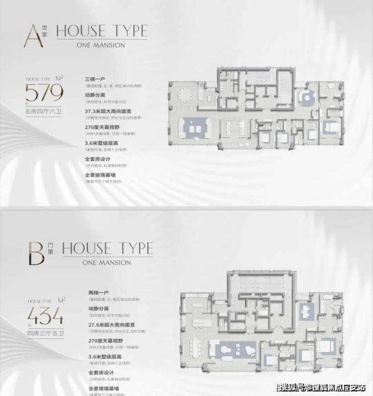 占地面积6000方,建筑面积3.2万方,地上2.1万方,地下1.1万方,容积率3.5,绿化率25%,车位配比1:3。1号楼579平一层一户大平层,2号楼434平一层一户大平层,共计35席。