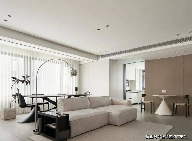 ▲ 客厅取消传统茶几的布局,腾出更多活动空间,选择模块沙发更加自由随性,也可以后期自己调整布局