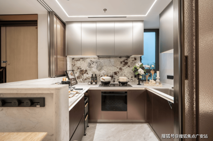 厨房: 集成 方太净洗中心与嵌隐升降烟机, 将清洗与净烟效率最大化。