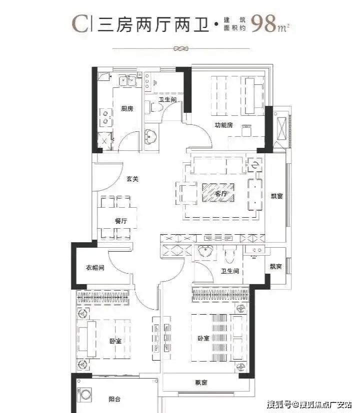 98㎡:总价130万-148万元,双卫设计,高得房率