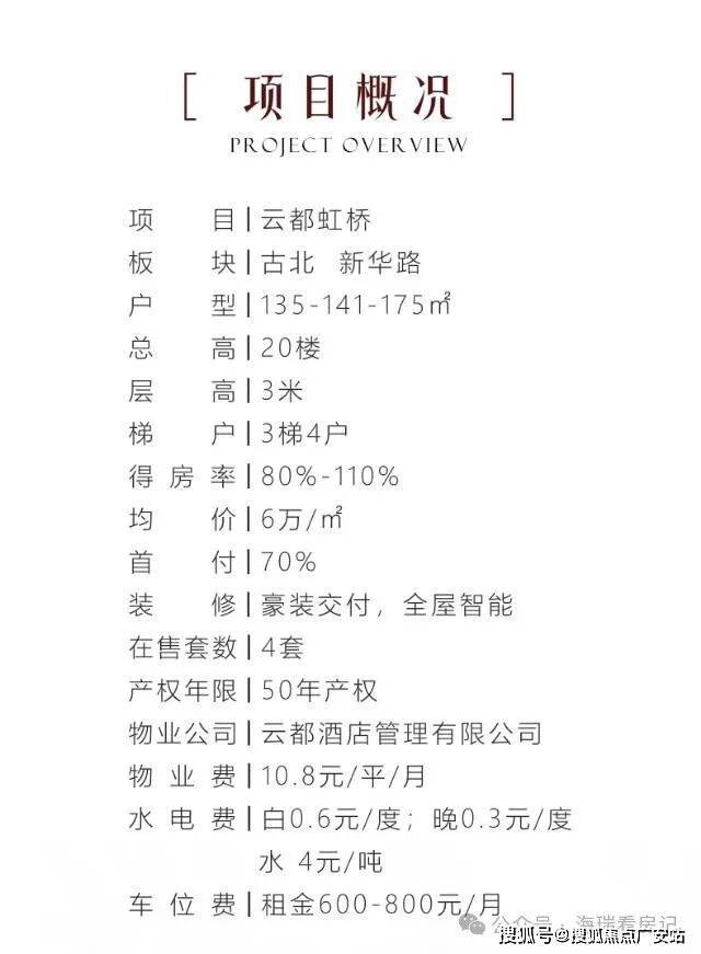 项目为70年产权住宅,建筑面积90-130㎡,总价350-500万,2梯4户设计,层高3.0米,得房率80%,南北通透双面采光,配备双阳台,通燃气,水电煤费用亲民。