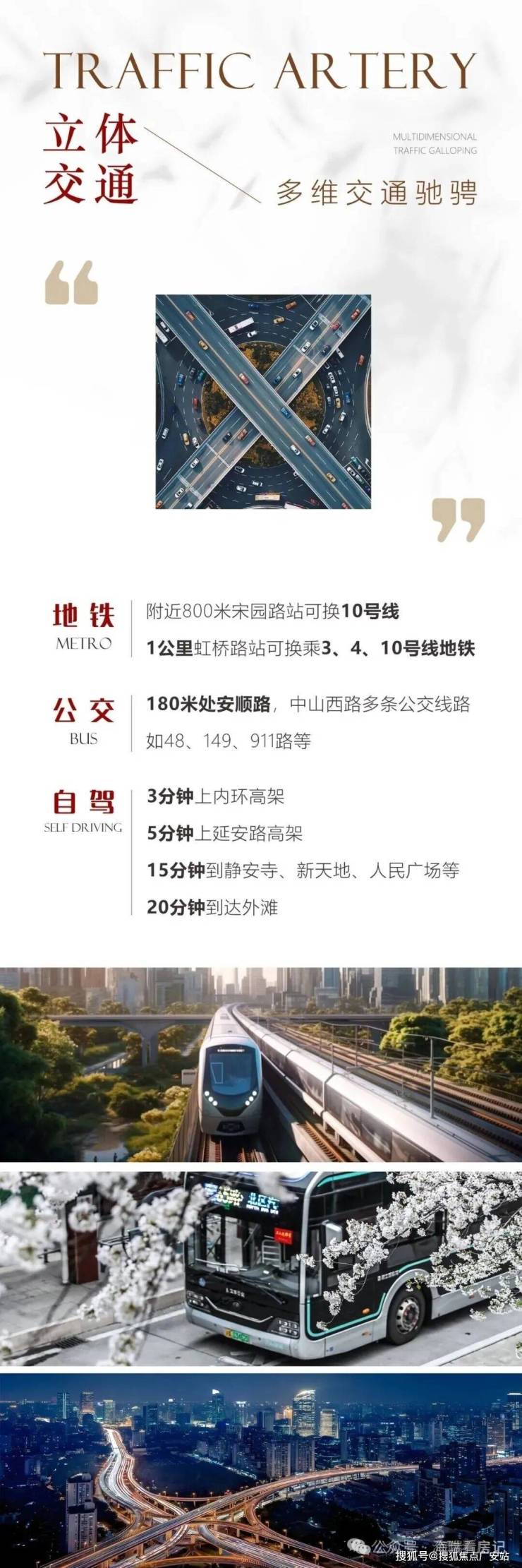 步行10分钟可达地铁2号线淞虹路站,15分钟直达静安寺,20分钟抵达徐家汇,25分钟到达虹桥机场,周边10余条公交线路覆盖市区主要区域,项目配备400个地下停车位。