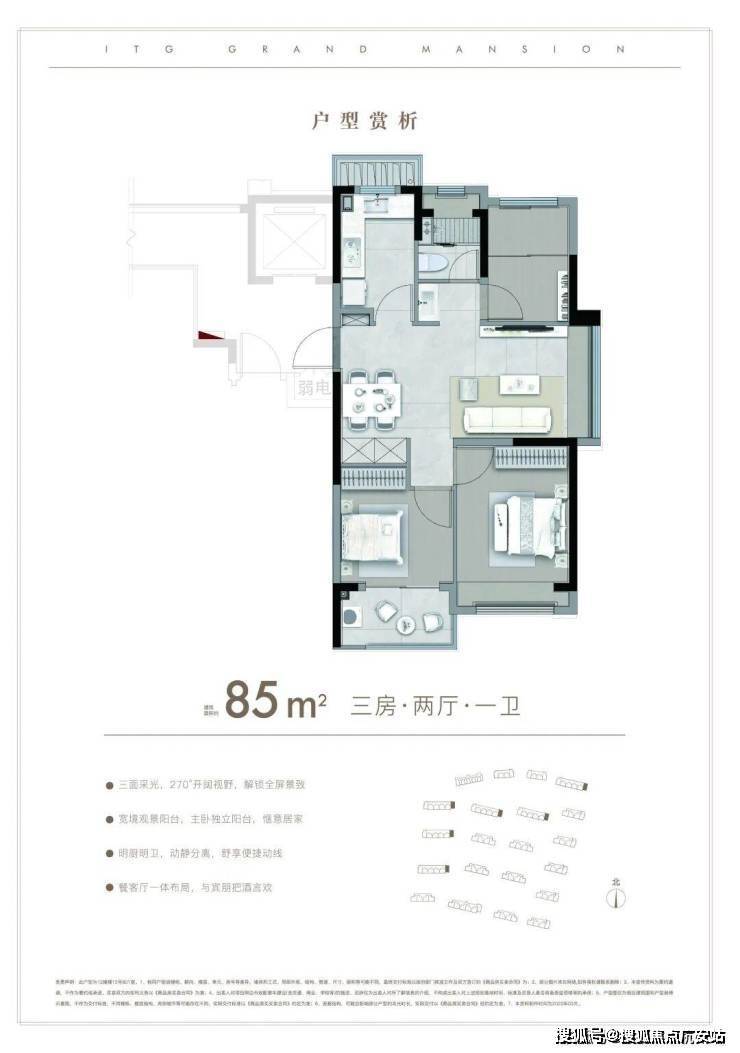 户型特点:全系全明通透、三开间朝南设计,得房率约78%-81%,空间利用率极高。户型方正,动静分区明确,功能布局合理。