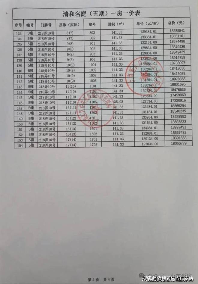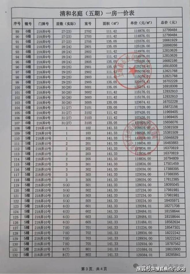 最新一房一价表公示: