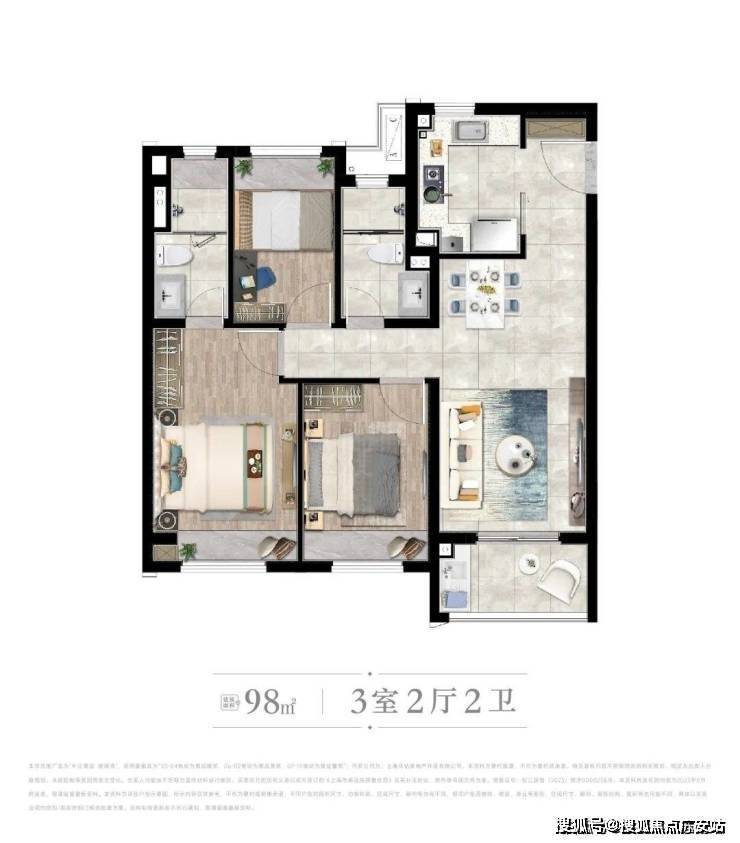 [ A户型 ] 建筑面积约98㎡ | 3房2厅2卫