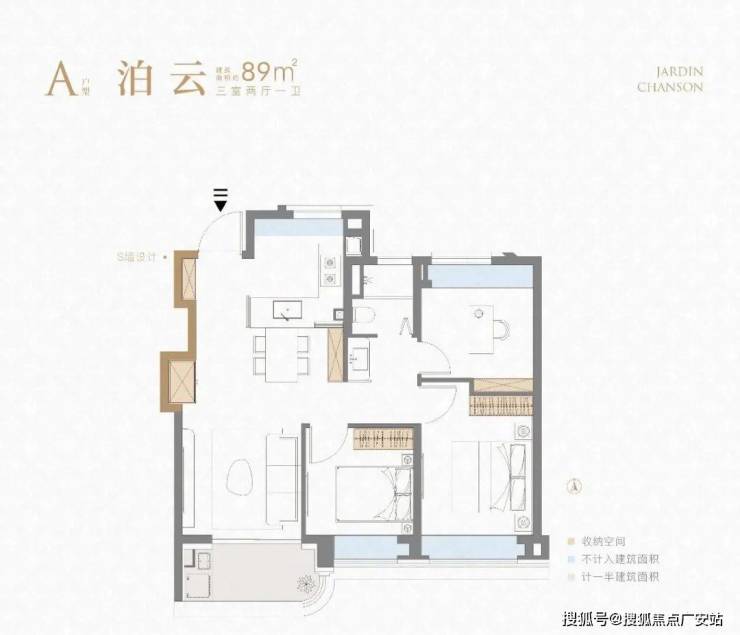 建面约89㎡三房:S墙设计+全飘窗,厨房带飘窗开创性扩容,约4.7米的客厅面宽,小户型亦有“成长性空间”。