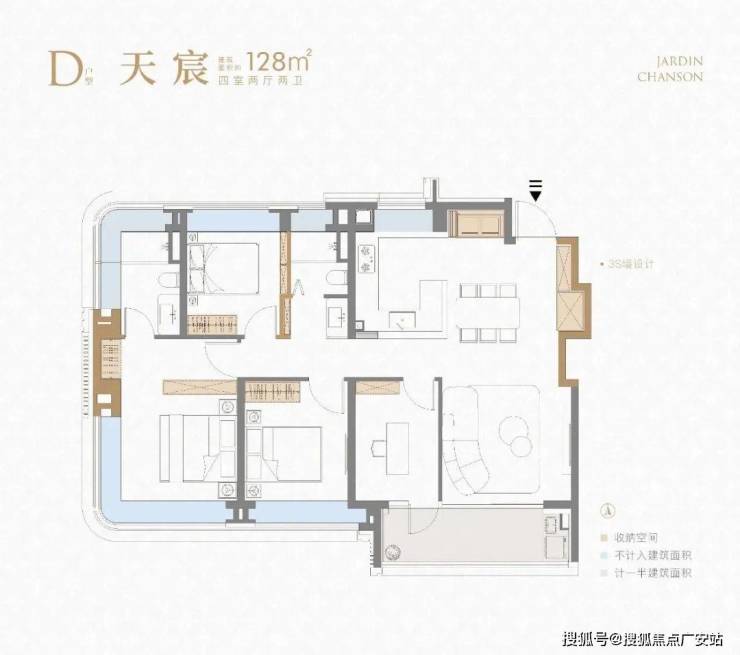 建面约139㎡四房:独立电梯入户+四开间朝南,7个飘窗+超大尺度阳台,对标千万级豪宅的“改善标杆”。