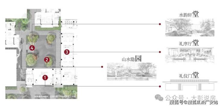 山水隐园在其中央,门堂、厅堂、轩堂围成合院,是一座三进式的院落。众多购房者在下定之前,都是先被实景示范区所惊艳。