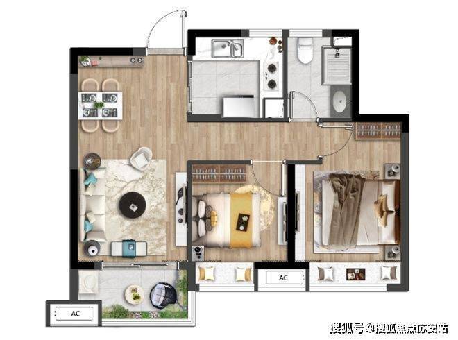 建面约74㎡两室两厅一卫