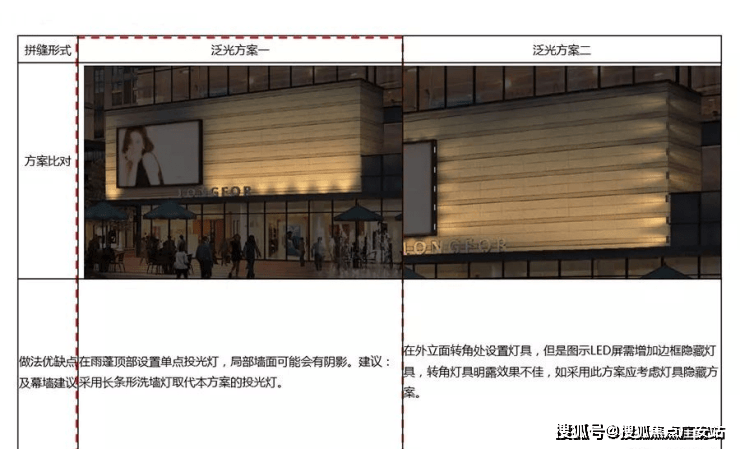 弗思龙湖天琅售楼处电话:400-8657-114(预约热线)特照明事业部的同事,对幕墙与泛光照明结合的形式提供了建议。石材幕墙与泛光照明结合的形式对比: