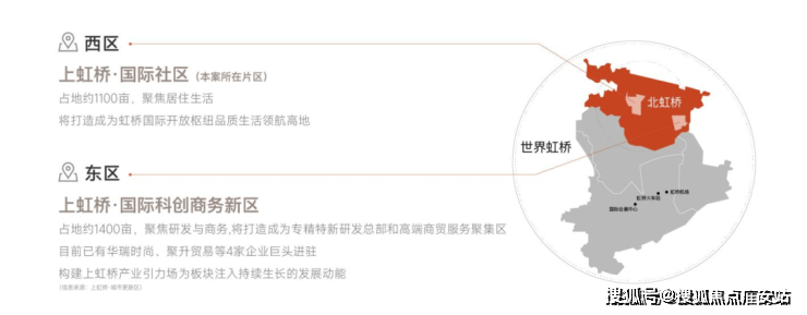 整体规划“东产西城:功能分区明确,产城融合共生。东区(约1400亩):聚焦商务研发,打造产业高地;西区(约1100亩):对标古北、碧云,倾力打造 新一代国际人文社区。其中,一期建筑规模总量约108万方,城市更新正不断加速。