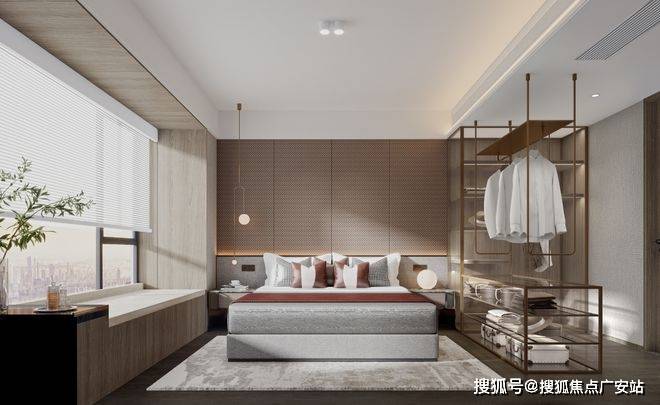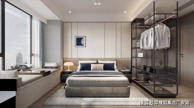 小家化主卧——超大衣帽储物+MINI吧+超大景观面飘窗。南向主卧系统,生活与繁杂拉开距离。
