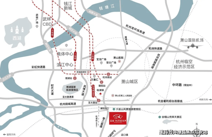 咫尺沪昆、绍诸高速,经风情大道1小时可达萧山主城,经时代大道1小时直抵滨江核心、钱江新城和西湖,通达八方,一览城市繁华。