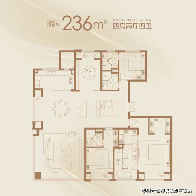 户型信息:有 149-236 平方米的四居室户型,包括 149 平方米 4 室 2 厅 2 卫、169 平方米 4 室 2 厅 3 卫、188 平方米 4 室 2 厅 3 卫、236 平方米 4 室 2 厅 4 卫等户型。户型设计方正,配有独立玄关。
