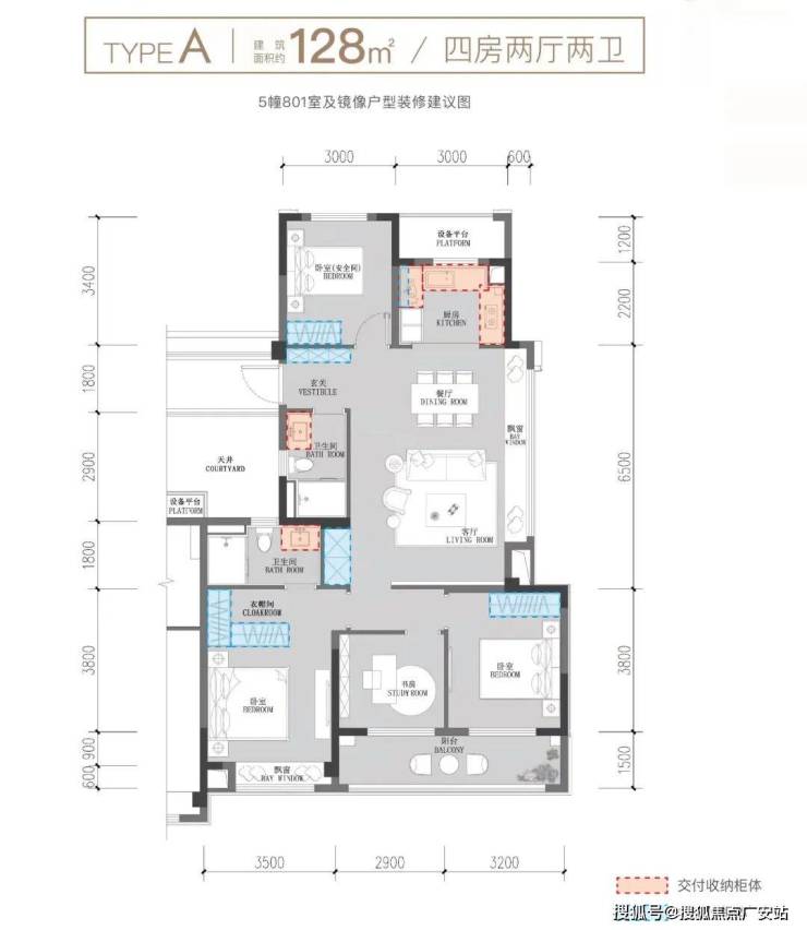 建面约128方户型图示意
