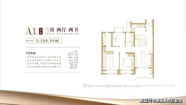 项目主力高层户型皆是建面约100㎡3房2厅2卫,室内布局大致相似,是功能性和尺度感完美结合的明星户型。