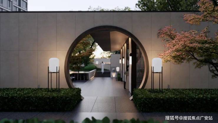 一重雅奢门头:延续苏州博物馆直线形苏韵门头设计,奢华体验与在地文化相融,社区主入口以《桃源仙境图》意境演绎,采用平廊、水墙、亭榭等元素构建多层次现代苏韵园林景观,让归家成为一次穿越风景的旅行